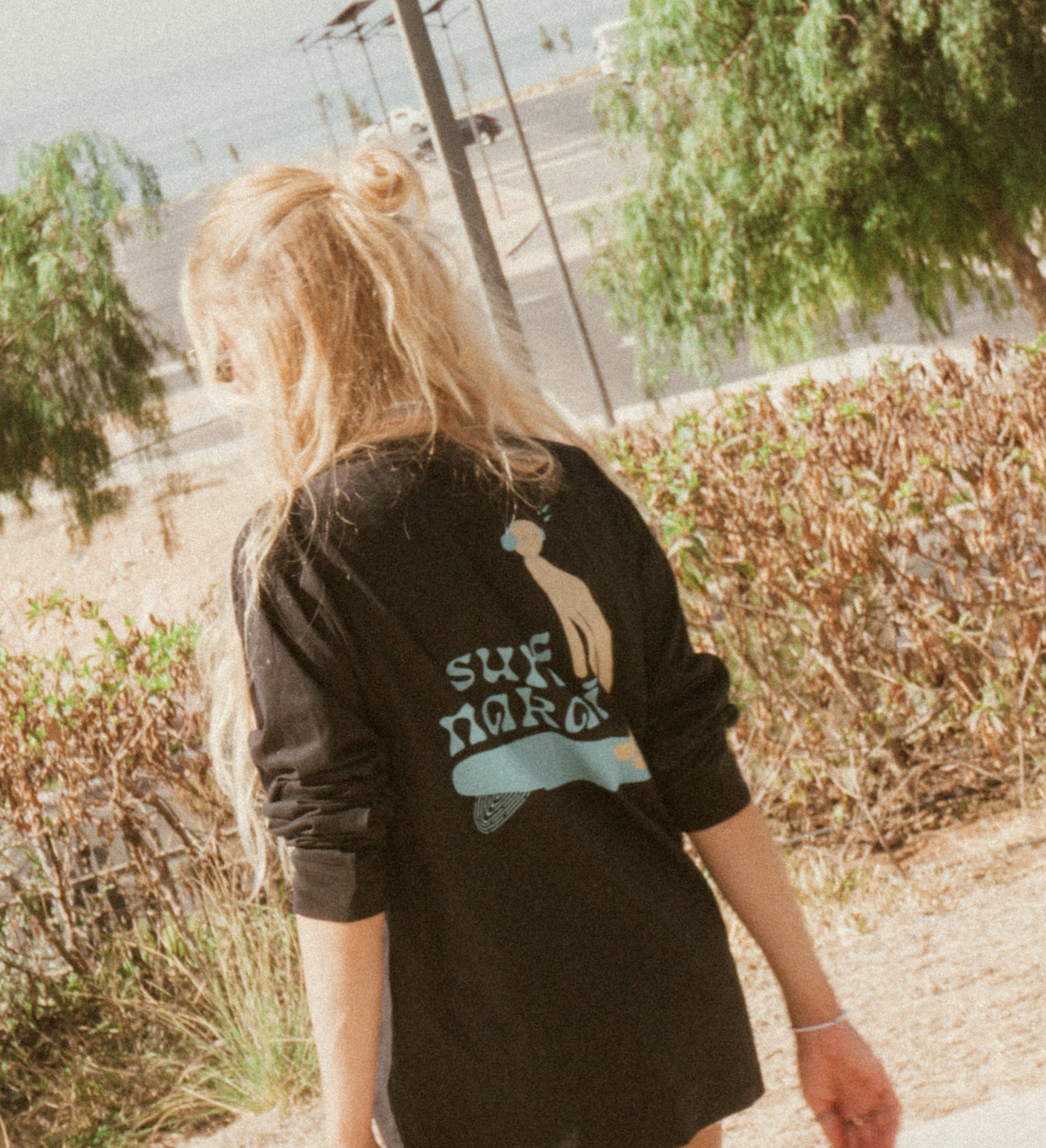 Długi rękaw, spokojny vibe.